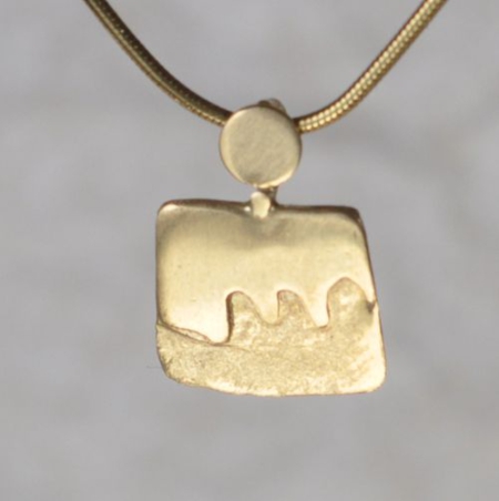 Dieser kleine Anhänger aus sattgelbem Gold ist 11 x 15 mm groß.