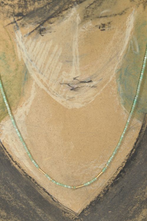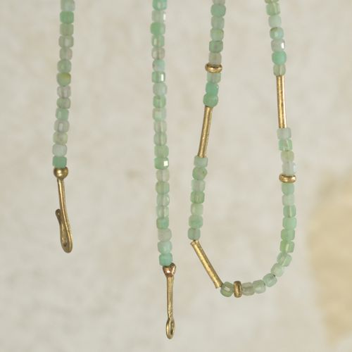 feines kleines Collier, Chrysopras mit Gold (18 kt)