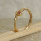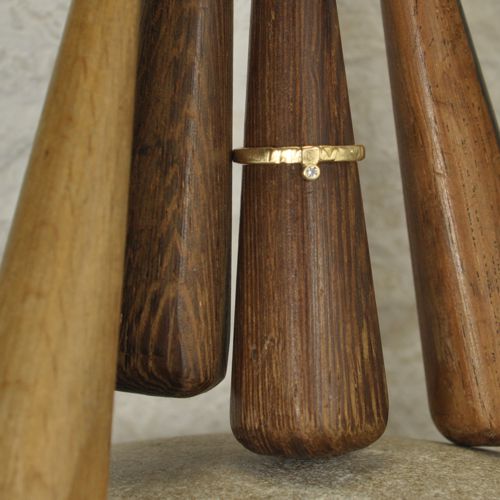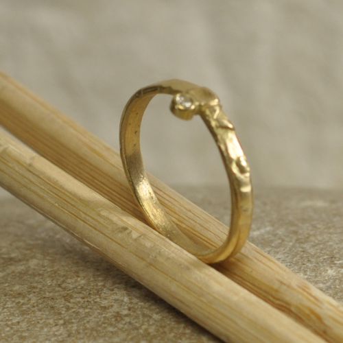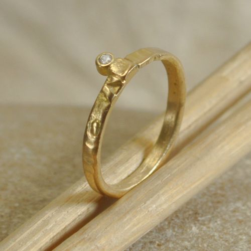 Dieser feine Goldring ist 2,5 mm breit. Der Diamant im Brillantschliff (TW/VSI) hat einen Durchmesser von 2 mm.