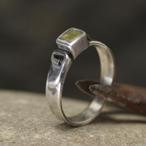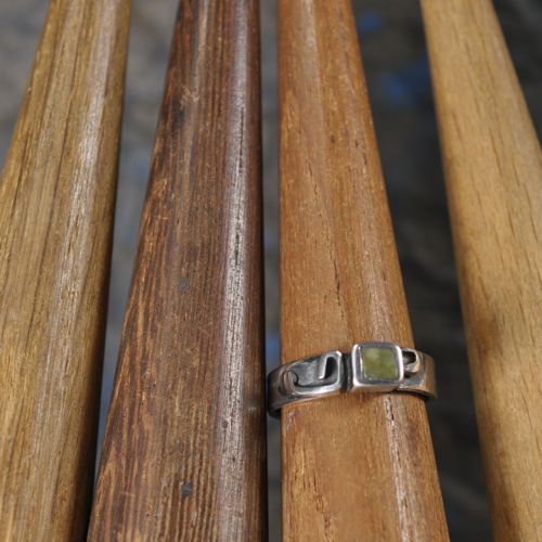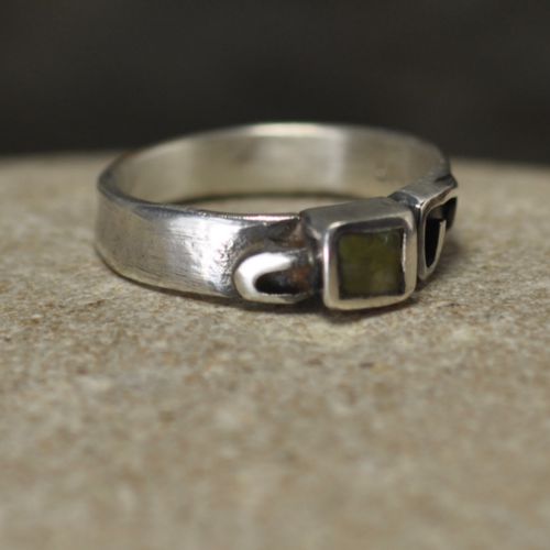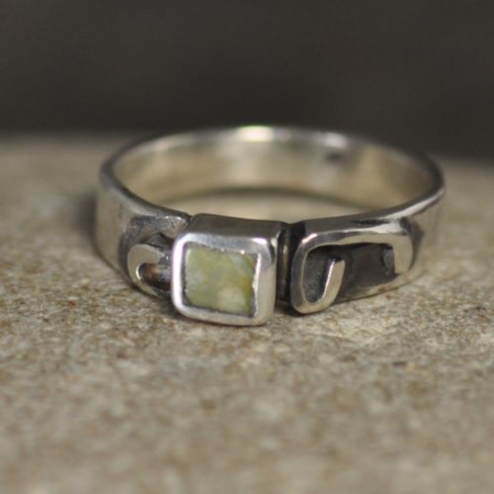 Dieser kleine Ring ist gut 5mm breit. Der Stein ist ein Rhyolith-Würfelchen und ist vulkanischen Ursprungs.